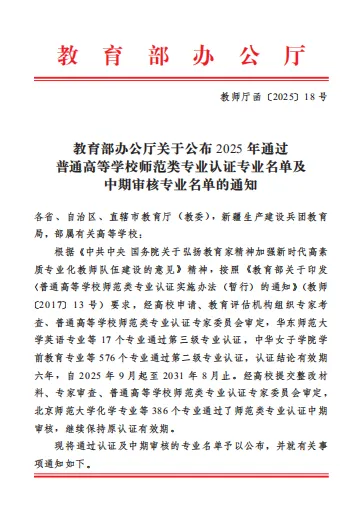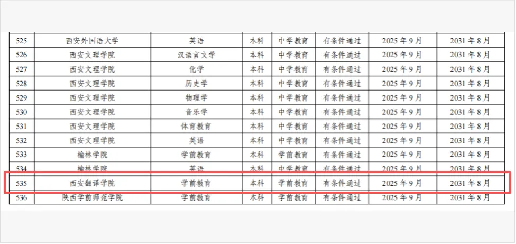 近日,教育部办公厅印发《关于公布2025年通过普通高等学校师范类专业认证专业名单及中期审核专业名单的通知》(教师厅函〔2025〕18号),西安翻译学院学前教育专业通过师范类专业第二级专业认证,成为全省首家通过该类认证的民办高校。