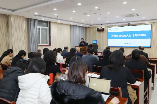 11月19日,西安翻译学院启动第五期教育思想观念大讨论。黑龙江大学原副校长严明受邀作《翻译硕士专业学位教育的思考》报告。校长姚书志及相关校领导、部分二级学院及职能处室负责人、科研处全体人员、教师代表听取报告并互动交流。副校长武忠远主持。
