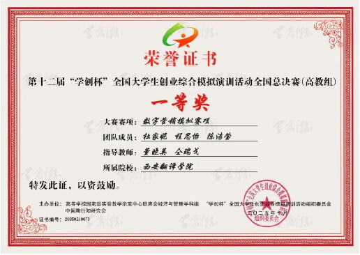 西译学子荣获第十二届“学创杯”全国大学生创业综合模拟演训活动全国总决赛(高教组)一等奖