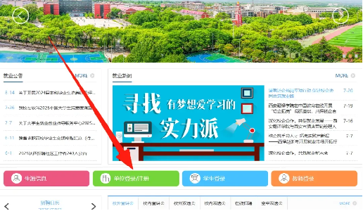 登录西安翻译学院就业信息网(http://xafy.bysjy.com.cn/),点击 “单位登录” 完成注册;